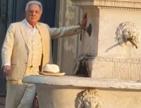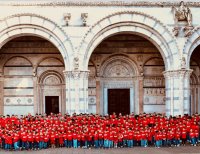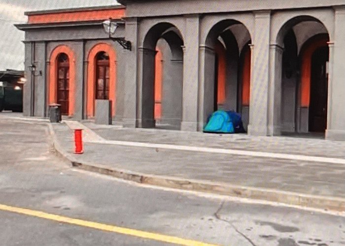 Con la tenda accampato sotto al loggiato della Sta...