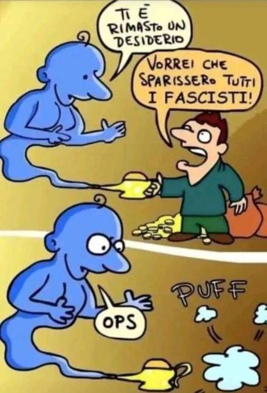 Provate a chiedere di far sparire dal mondo tutti i fascisti, ma attenzione agli effetti imprevisti, dato che spesso chi odia i fascisti non si accorge di esserlo a sua volta!