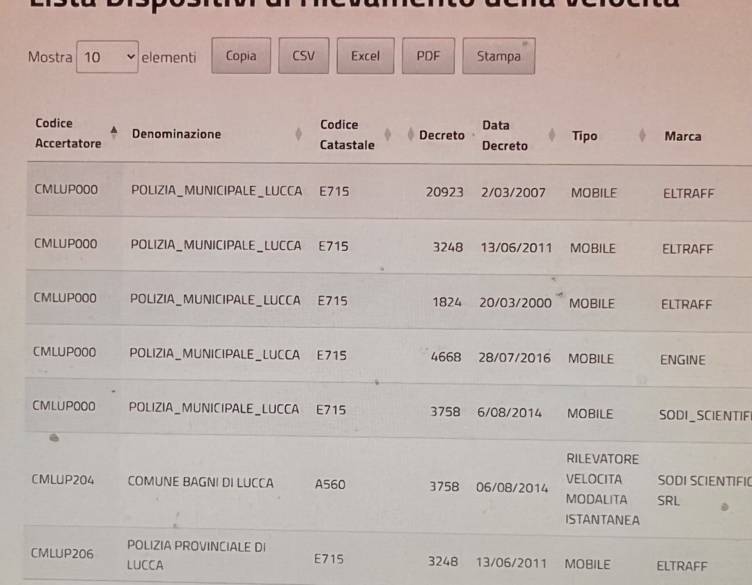 La lista completa al sito https://velox.mit.gov.it/dispositivi