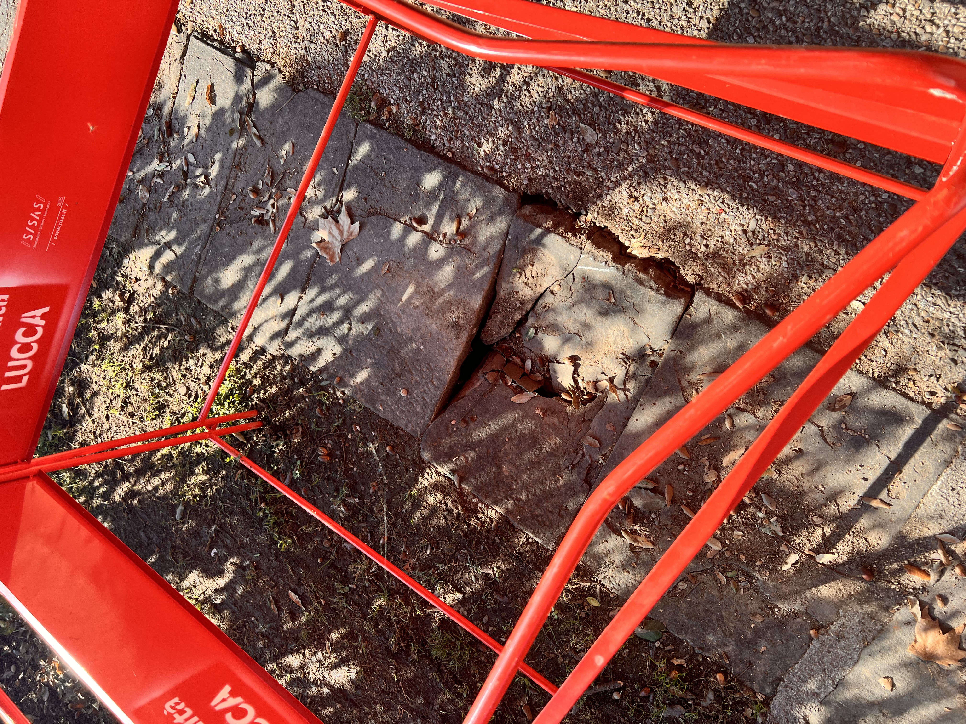Lucca. Pavimentazione pietre rotta e sconnessa, in...
