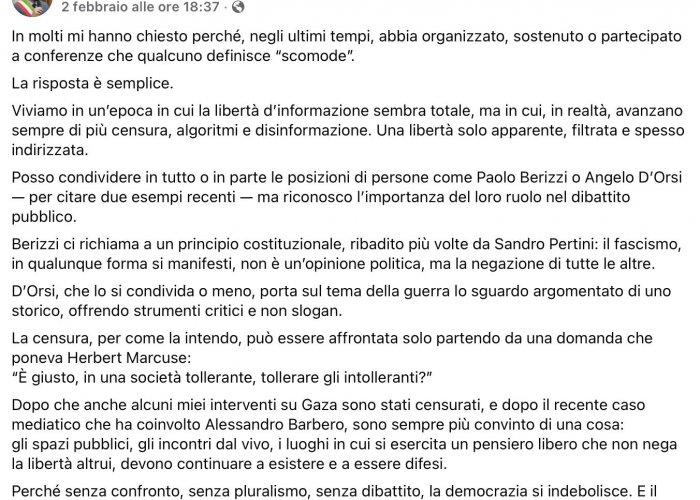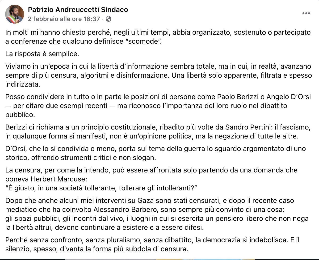 In un lungo post il sindaco di Borgo a Mozzano Pat...