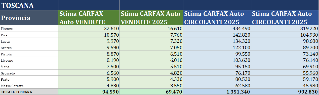 Auto usate in Toscana: quasi 94.600 veicoli vendut...