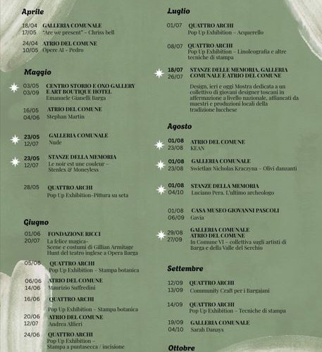 BARGA 2026 Castello dell'arte | Calendario mostre della nuova stagione