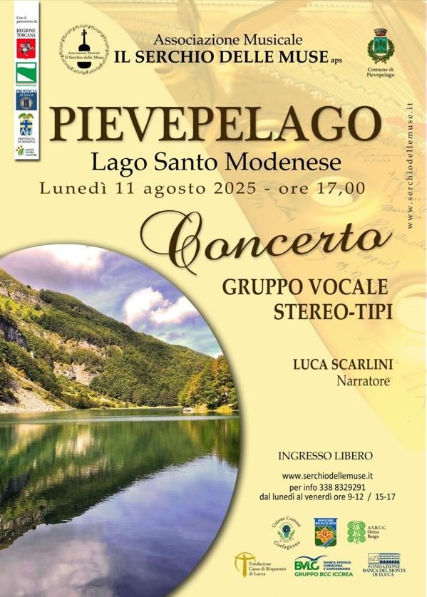 Si prosegue quindi domani (lunedì 11 agosto) con la rituale tappa oltre confine, al Lago Santo modenese, nel segno di un sodalizio artistico tra i Comuni di Barga e Pievepelago. Alle ore 17 si esibirà il Gruppo Vocale “Stereo-Tipi” con un repertorio corale, quasi esclusivamente acappella (ovvero senza strumenti), con voci miste femminili e maschili di entrambi i registri (alti e bassi). A fare da narratore sarà Luca Scarlini.