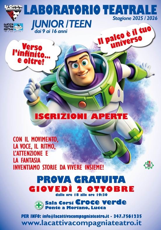 La Cattiva Compagnia, gruppo teatrale che da oltre dieci anni organizza con successo il Lucca Teatro Festival – Che cosa sono le nuvole?, torna a proporre i suoi laboratori di teatro ospitati negli spazi della Croce Verde di Ponte a Moriano (via Luigi Vecchiacchi, 17).