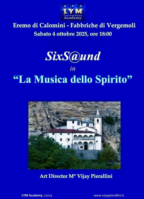 Domani, sabato 4 ottobre 2025, alle ore 18, l’Eremo di Calomini a Fabbriche di Vergemoli si trasformerà in un palcoscenico d’eccezione per accogliere il concerto del gruppo vocale SixS@und, protagonista dello spettacolo dal titolo evocativo “La Musica dello Spirito”.