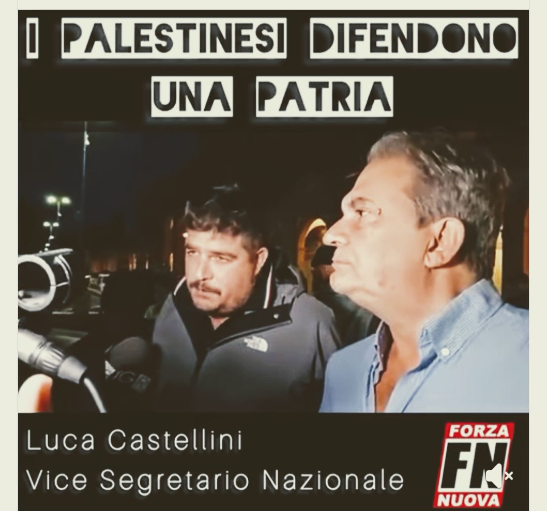 Per spiegare la nostra posizione in merito al conflitto tra Israele e Palestina bisogna partire dal nostro pregresso sulla più generale questione del Vicino Oriente. Forza Nuova ha fortissimi rapporti in Libano con Hezbollah e con Michel Aoun. Ed io stesso sono stato dieci volte in Siria acquisendo una conoscenza diretta delle diverse fasi della guerra in quel Paese. La nostra posizione a favore della Palestina è storica. Sosteniamo che la Palestina abbia diritto all’esistenza: è sbagliato volere imporre un solo stato ebraico e razzista, come sarebbe sbagliato voler imporre un solo stato palestinese fondamentalista. La nostra posizione è quella che sosteneva storicamente Arafat: la Palestina deve essere come la Svizzera, un territorio che deve comprendere tutte le comunità: israeliana, palestinese, drusa