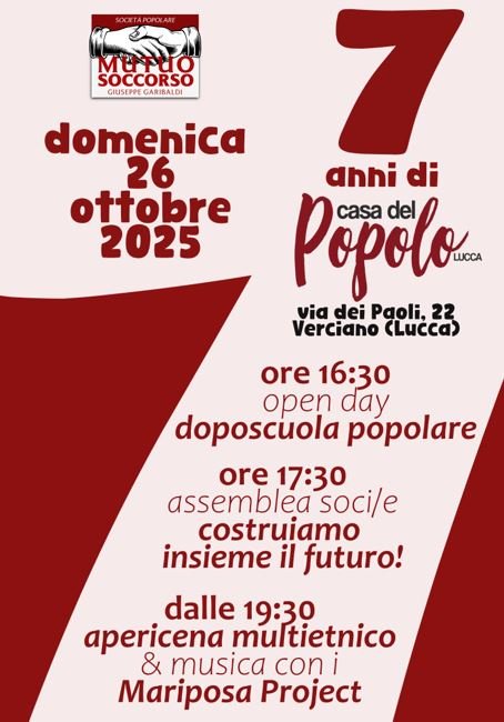La Società Popolare di Mutuo Soccorso invita tutta la comunità che vive la Casa del Popolo e i simpatizzanti domenica 26 ottobre per fare festa tutti e tutte insieme.