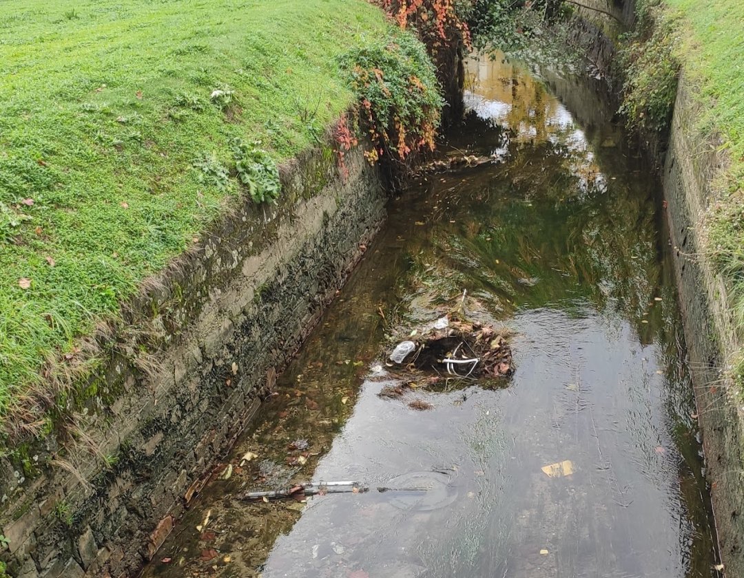 Lucca. Una pulita ogni tanto, al pubblico condotto lucchese in via del Fosso centro storico di Lucca, con l'acqua bassa si vede di tutto, bottiglie, calcinacci, spazzatura, cartelli stradali.
