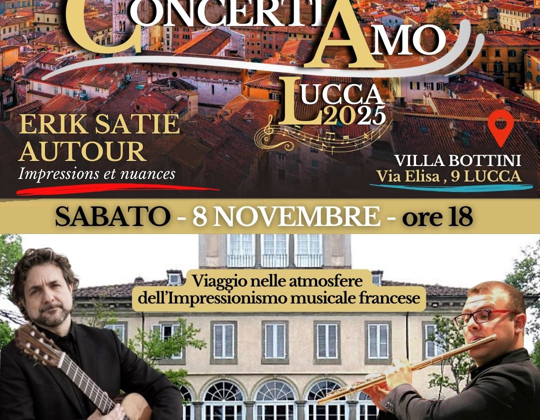 Ecco che il Concerto dell’8 di novembre alle 18 a Villa Bottini del noto flautista Raffaele Bifulco, docente del Conservatorio di Modena, concertista e primo flauto in prestigiose orchestre, tra cui OGI di Fiesole, Cherubini, Teatro Petruzzelli di Bari, Orchestra della Radiosvizzera Italiana di Lugano, esibitosi nell’ambito di prestigiosi festival Internazionali come la Scala di Milano, Musikverein di Vienna e Teatro Colòn di Buenos Aires, e di Dario Vannini, docente di chitarra classica del Conservatorio L. Boccherini di Lucca, parte del quartetto di chitarre Boccherini Guitar Quartet, con cui ha conseguito due primi premi assoluti in concorsi chitarristici internazionali di musica da camera, sarà un vero e proprio viaggio nelle sfumature dell’Impressionismo musicale francese.
