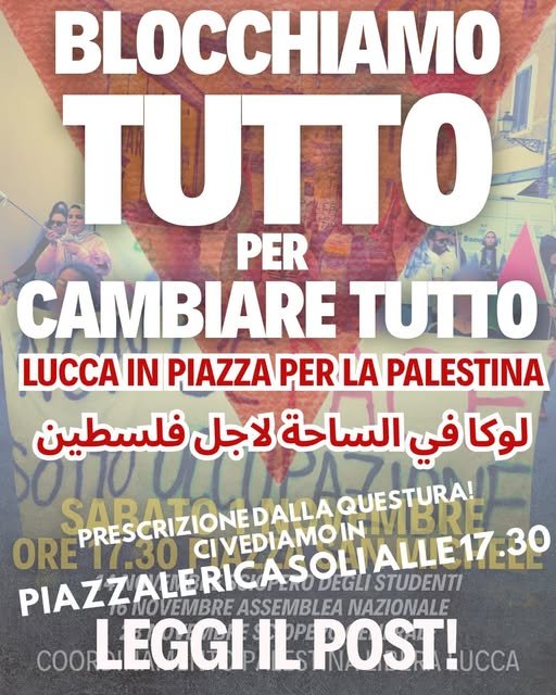 Dopo aver regolarmente comunicato un presidio sabato 1 novembre alle 17.30 per denunciare le ennesime violazioni alla tregua da parte del governo e dell'esercito israeliano, la questura ha negato il diritto costituzionale di manifestare, escludendo perfino la possibilità di intervenire con una piccola delegazione in piazza San Michele o in piazza Grande.