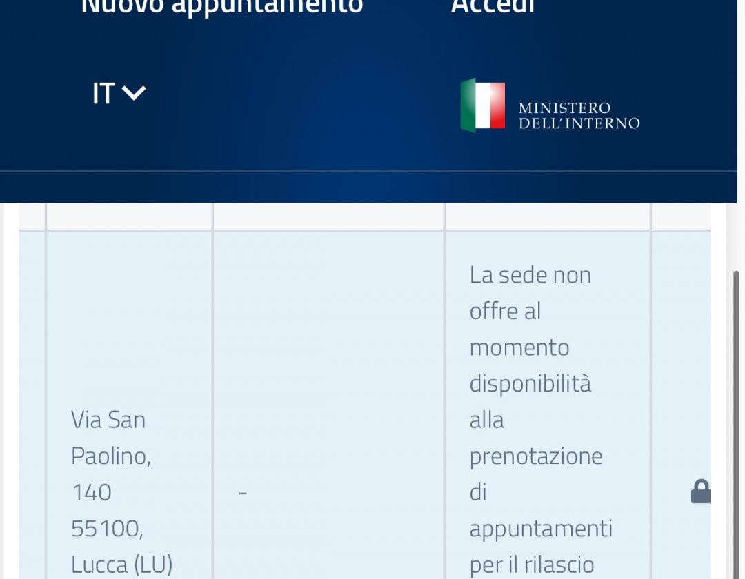 Impossibile prendere un appuntamento con l’anagrafe di Lucca . Siamo nel 2025 sveglia! “ La sede non offre al momento disponibilità alla prenotazione di appuntamenti per il rilascio della CIE mediante questo sistema.”