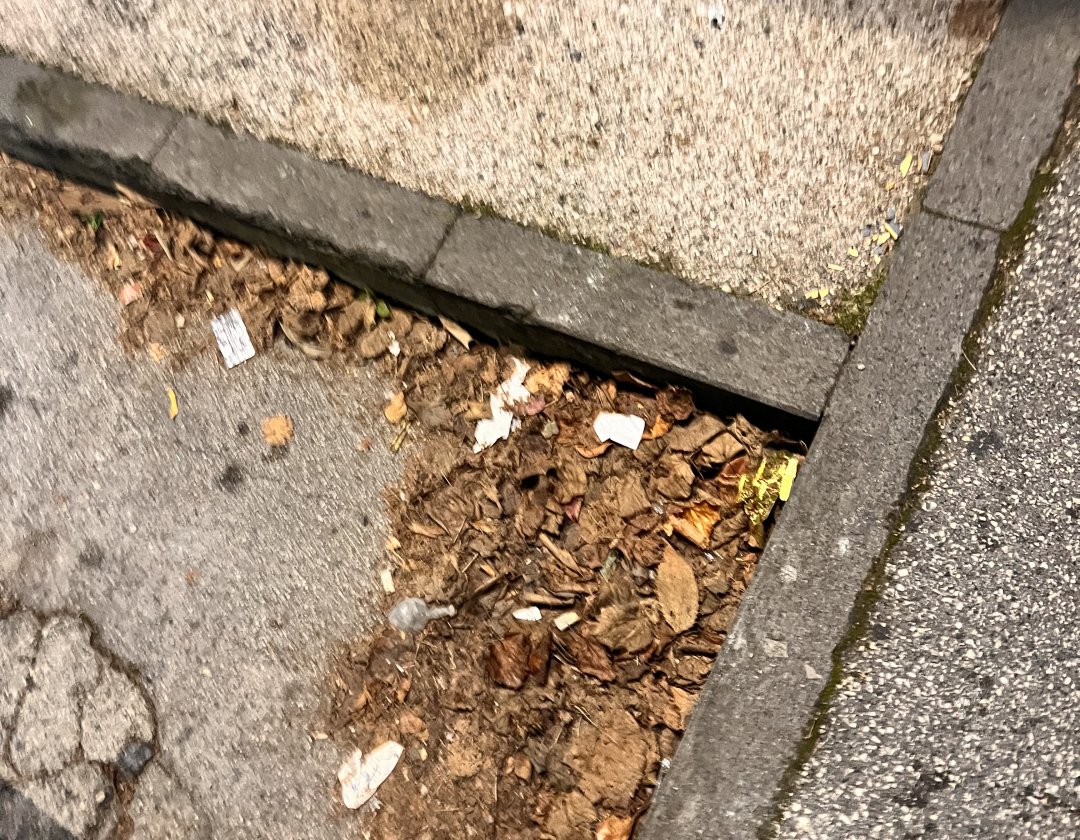 Non solo la pista ciclabile non viene pulita e dove sono le auto in sosta idem, ma i tombini rimangono tappati da fanghiglia e foglie.