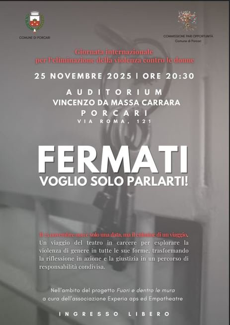 GIORNATA CONTRO LA VIOLENZA SULLE DONNE. A Porcari va in scena FERMATI, VOGLIO SOLO PARLARTI