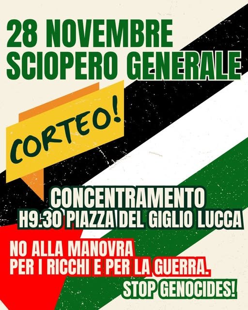 VENERDÌ 28 NOVEMBRE SCIOPERO GENERALE DEL SINDACALISMO DI BASE! A LUCCA CONCENTRAMENTO ORE 9.30 IN PIAZZA DEL GIGLIO E CORTEO CITTADINO https://www.facebook.com/CobasLucca