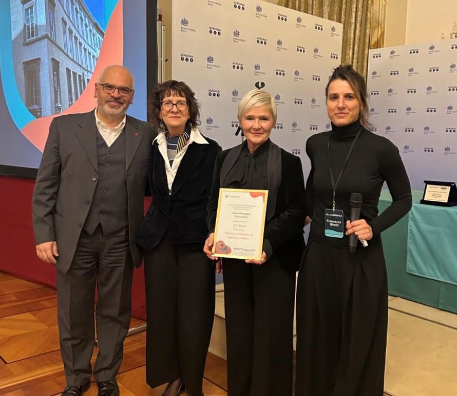 Il Liceo Artistico Musicale “ A. Passaglia” di Lucca nelle figure delle referenti del progetto “Certificazioni linguistiche Cambridge” Prof.sse Tatiana Grossi e Anna Maria Lippi, fortemente sostenute dalla dirigente scolastica Prof.ssa Gerardina Attanasio, è stato premiato nella categoria “Making a difference in upper secondary” per i risultati ottenuti nell’implementazione della certificazione Cambridge per la lingua inglese nella scuola secondaria di secondo grado.