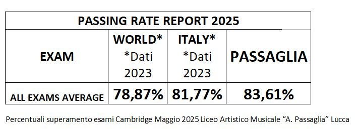 “Il Liceo Artistico Musicale Passaglia, grazie alla Prof.ssa Grossi ed alla Prof.ssa Lippi si distingue per la capacità di coniugare creatività e competenze accademiche di livello internazionale. Attraverso la collaborazione con Cambridge, la scuola ha offerto ai propri studenti corsi di preparazione linguistica che hanno permesso loro di raggiungere traguardi straordinari: diversi ragazzi, infatti, sono riusciti a conseguire la certificazione di livello C2, il massimo riconoscimento linguistico previsto dal Quadro Comune Europeo di Riferimento.