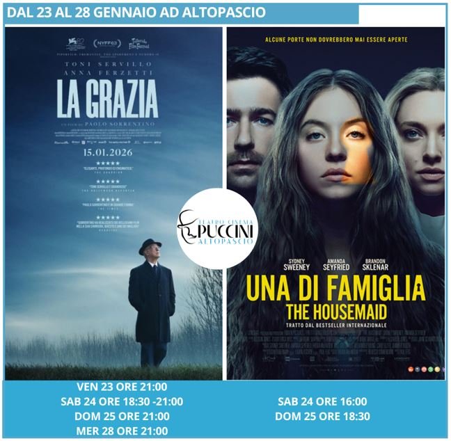 la programmazione del cinema al Teatro Puccini di Altopascio (via Regina Margherita 17), dal 23 al 28 gennaio