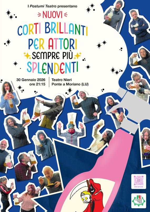 Protagonista della serata sarà la Compagnia I Postumi Teatro, in scena con “Nuovi Corti brillanti per Attori sempre più splendenti”: una carrellata di “corti” e situazioni comiche dal ritmo brillante, pensata per coinvolgere e divertire il pubblico.