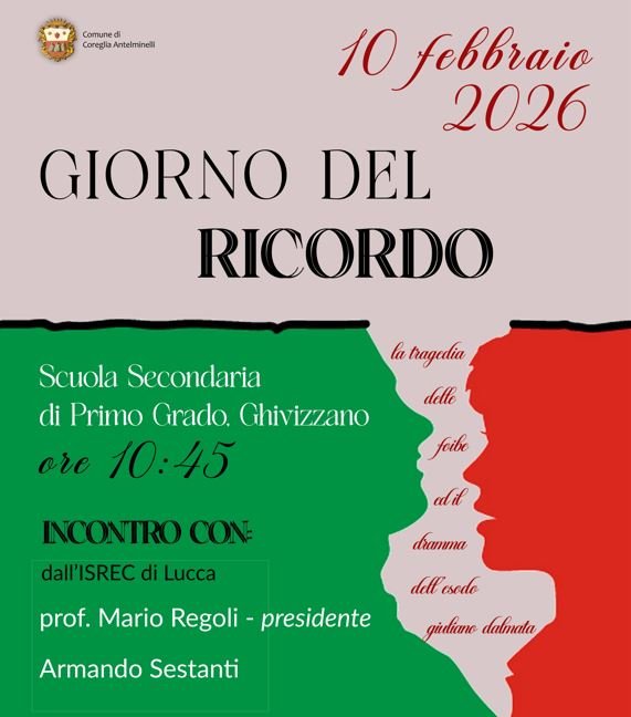 Comune di Coreglia Antelminelli celebrerà quest’anno il Giorno del Ricordo organizzando un incontro presso la Scuola Secondaria di Primo Grado di Ghivizzano per rievocare una delle pagine più oscure del nostro recente passato: i massacri delle foibe e l'esodo giuliano dalmata.