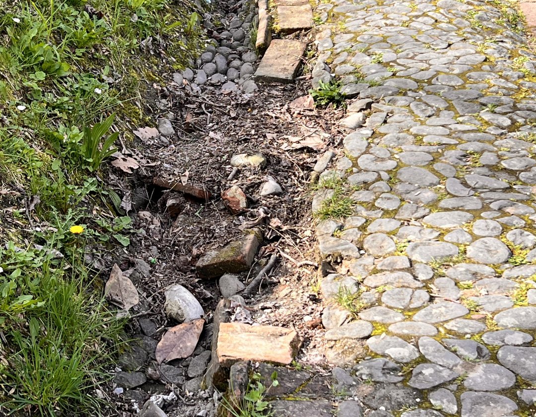 Ad esempio, questa salita alle mura ha bisogno di rimettere a posto i ciottoli ( ormai il cordolo di mattoni è andato perso ). Questo perché non si fa la minima manutenzione. È inutile riempirsi la bocca di servizi come i cantonieri del comune ( Raspini dicit ) e costituire il comitato per valorizzare le mura ( Santini doxit ), se poi anche la minima manutenzione viene completamente ignorata e lasciata andare.