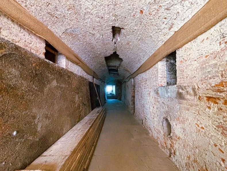 di un cinque silos per lato. Il corridoio ha al di sopra cinque mezzi