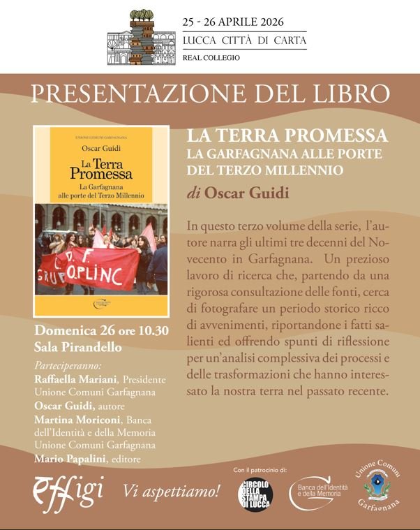 Domenica 26 aprile, presso il Real Collegio di Lucca, l’Unione Comuni Garfagnana presenterà, con il patrocinio del Circolo della Stampa di Lucca, tre volumi della propria collana Banca dell’Identità e della Memoria editi da Effigi