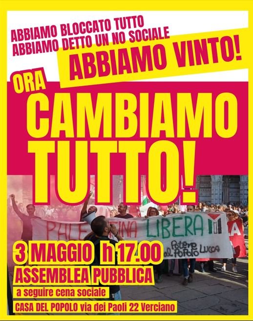 questa importante pagina di storia lucchese con l'assemblea pubblica "Cambiamo tutto!", domenica 3 maggio alle 17 alla Casa del Popolo di Verciano.